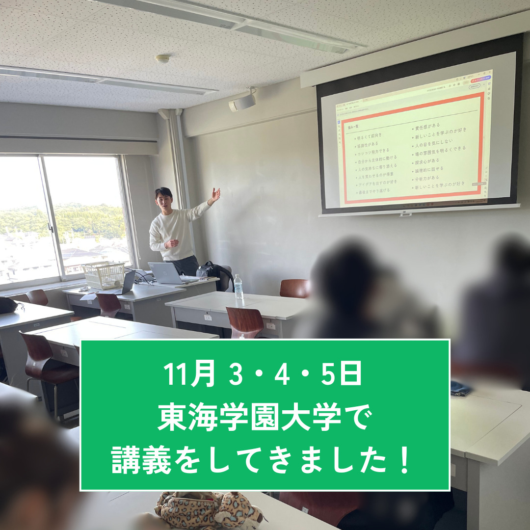 11月3~5の3日間、東海学園大学スポーツ健康科学部の1-2年生に講義をさせていただきました。
